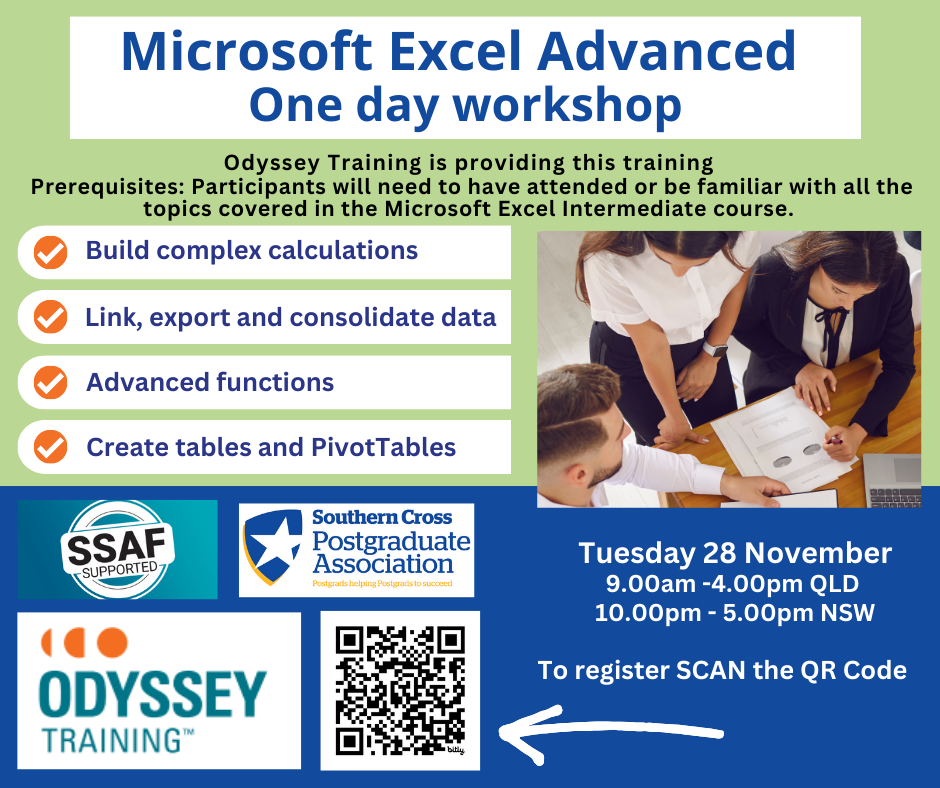 Register via Link: https://www.cognitoforms.com/SouthernCrossUniversity/MicrosoftExcelAdvanced2023