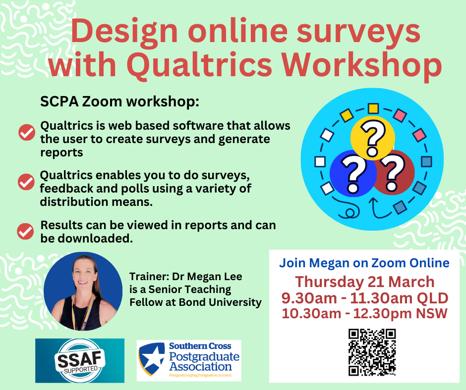 Register via Link: https://www.cognitoforms.com/SouthernCrossUniversity/QualtricsWorkshopWithDrMeganLee