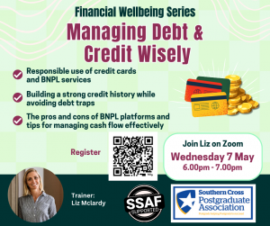 Register – https://www.cognitoforms.com/SouthernCrossUniversity/FinancialWellbeingManagingDebtAndCredit