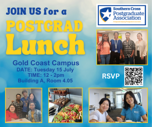 Join us and enjoy Postgrad Lunch at the Gold Coast Campus